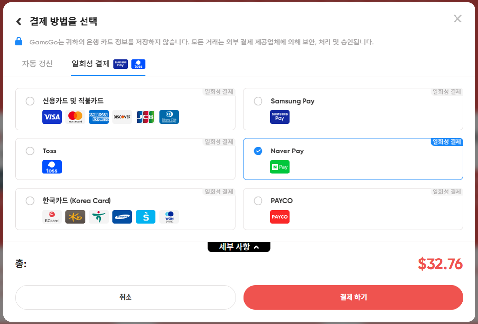 결제 수단은 다양합니다.