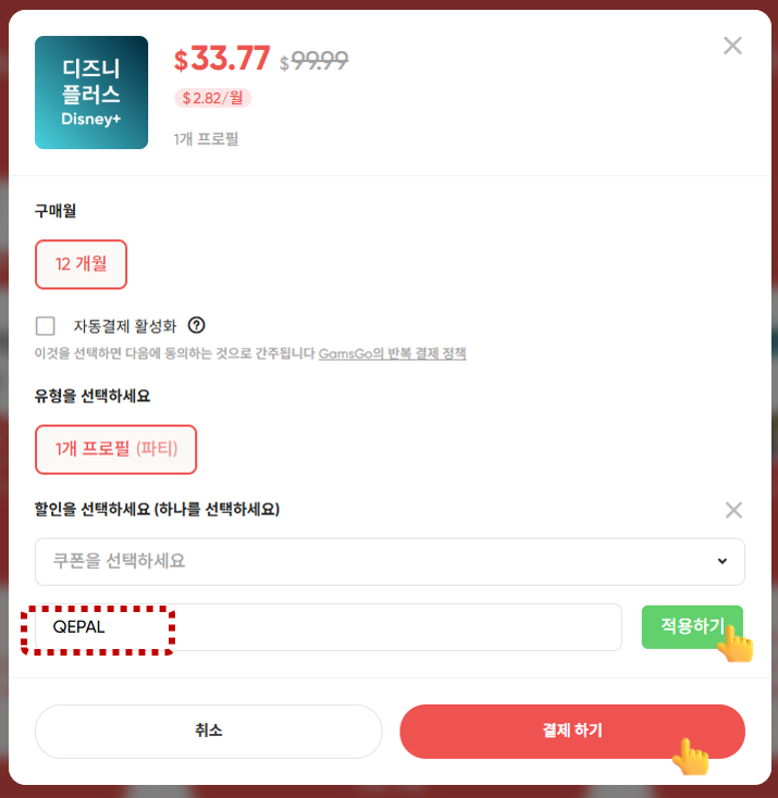 할인코드 QEPAL은 모든 서비스에 중복 적용 가능하니