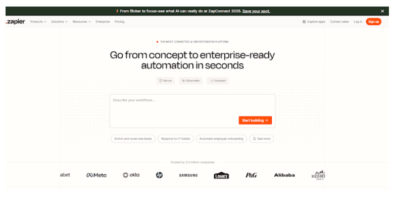 Zapier는 다양한 웹 애플리케이션을 연결하고, 자동으로 작업을 실행해주는 도구입니다. 예를 들어, 이메일을 열면 자동으로 Google Sheets에 데이터를 기록하거나, 새로운 Google Calendar 이벤트가 생기면 Slack으로 알림을 보내는 등 다양한 자동화를 할 수 있습니다.