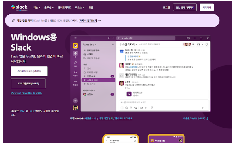 Slack은 팀 커뮤니케이션의 중심이 되는 도구입니다. 제가 일하는 팀에서는 Slack을 통해 채팅방을 구성하고, 중요 정보를 빠르게 주고받을 수 있어 유용합니다. 또한, 다양한 봇 기능과 연동으로 업무 효율성을 극대화할 수 있어 매우 만족스러운 도구입니다.